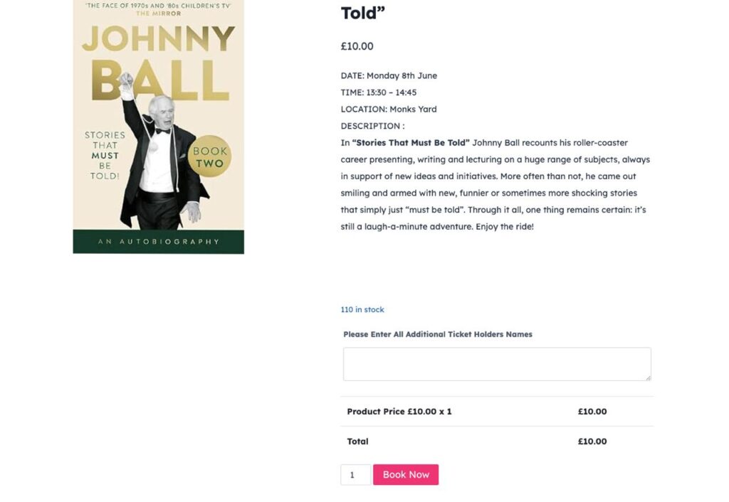 3. Fill in how many tickets you would like and the names of the people attending then click BOOK NOW